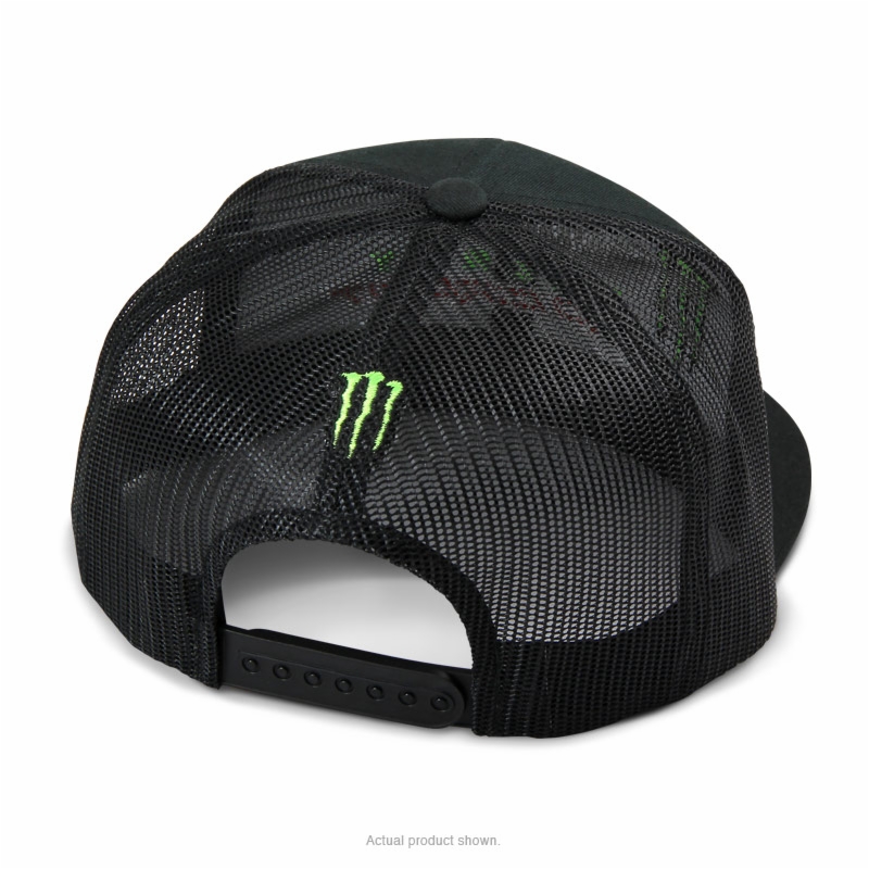 Die Team-Kappe ist mit den kultigen Monster Energy-, Pro Circuit- und Kawasaki-Logos auf der Vorderseite und einer Monster Energy-Klaue auf der Rückseite versehen.