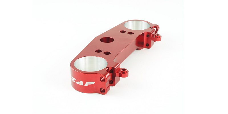 ZAP Gabelbücke oben in "rot" für CRF 10-, 450 09-gefräst aus geschmiedetem Aluminiumentwickelt und getestet von Topfahrern in Verbindung mit unserer 3teiligen Spezial-Lenkeraufnahme sind 16 verschiedene Lenker-Positionen möglich.