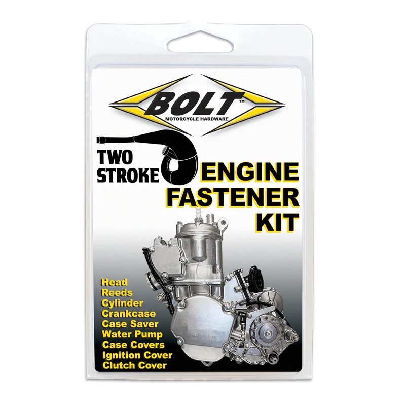 Der Zweitakt Motor Schrauben Kit enthält alle externen Befestigungselemente vom oberen bis zum unteren Ende, einschließlich Hardware für: Zylinderkopf, Membran, Zylinder, Kurbelgehäuse, Gehäuseschoner, Wasserpumpe, linke Gehäuseabdeckung, Zündungsdeckel, innere und äußere Kupplungsabdeckungen und Deckel der Auslasssteuerung.