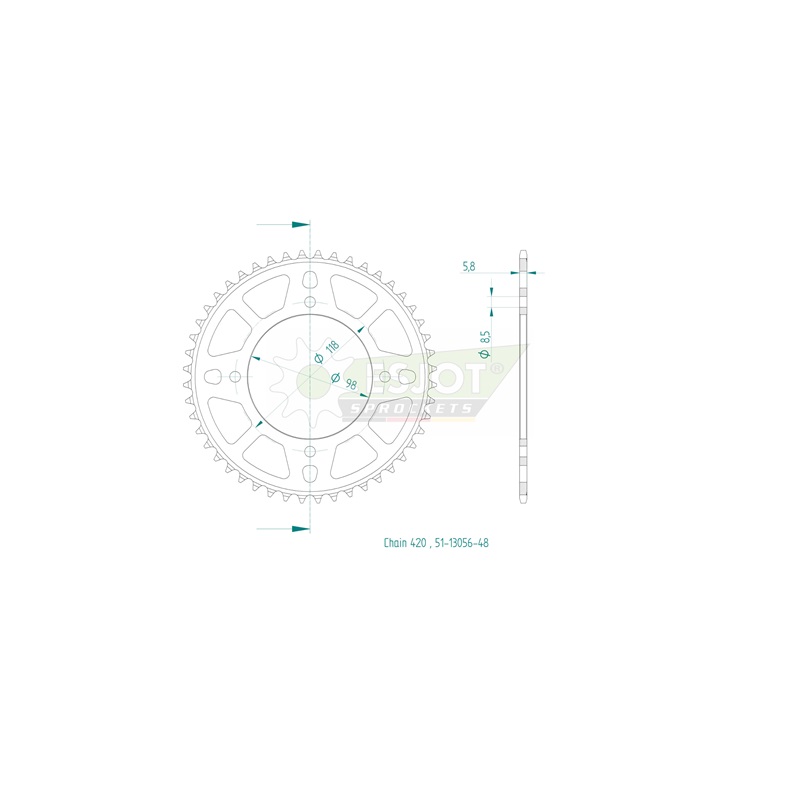 ESJOT ulratleichte Aluminium-Kettenräder wurden speziell für die harten Einsatzbedingungen im Motocross und Enduro entwickelt. Gegenüber herkömmlichen Stahlkettenrädern bringt ein ESJOT Alu-Kettenrad eine Gewichtsersparnis von über 60%. Die Verwendung von sehr hochwertigem 7075 T6 Aluminium sowie die extrem geringen Fertigungstoleranzen sorgen hierbei für eine außerordentlich lange Haltbarkeit. ESJOT Kettenräder zählen zu den besten Kettenrädern weltweit.
